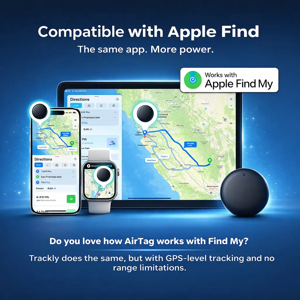 Sí, se integra totalmente con Apple Find My, ofreciendo rastreo GPS real y alertas instantáneas.
